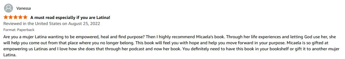 Micaela believes in the strength of sisterhood and urges readers to find or build a community where they can grow together.